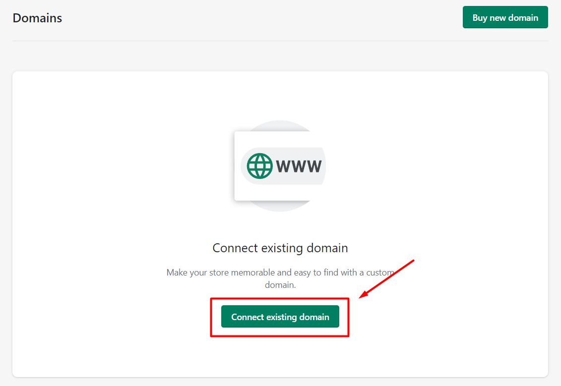 - Next, click the Connect existing domain button.
