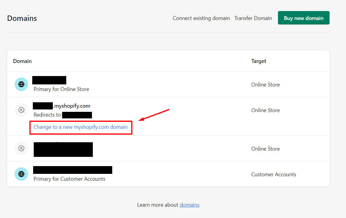 new myshopify.com domain link. From here, enter your new myshopify.com domain and