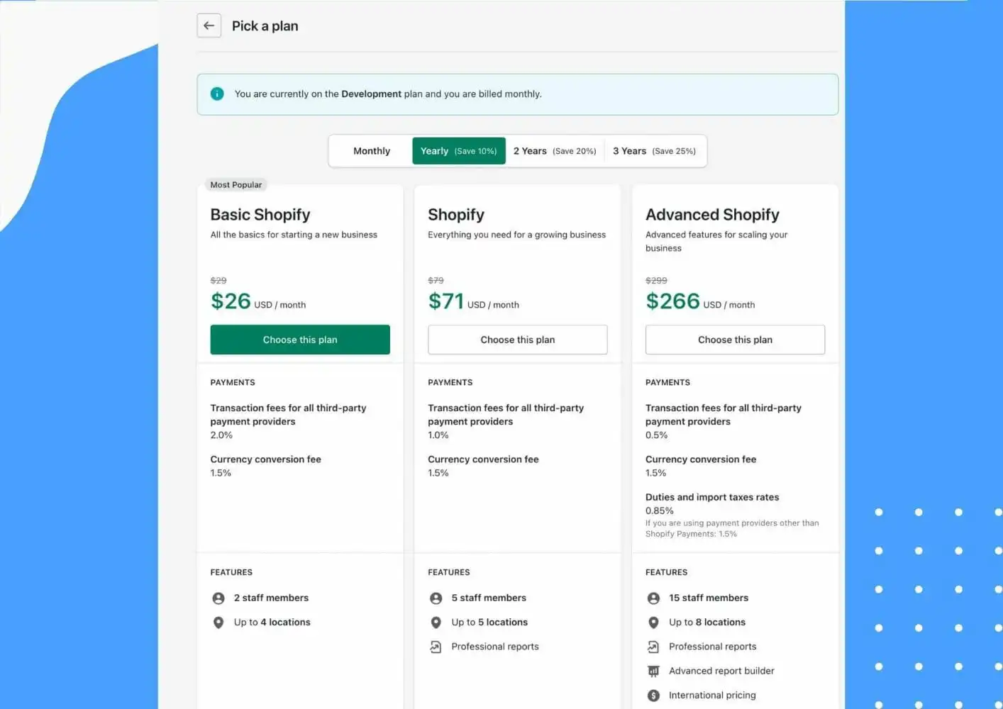 Shopify offers three paid plans: