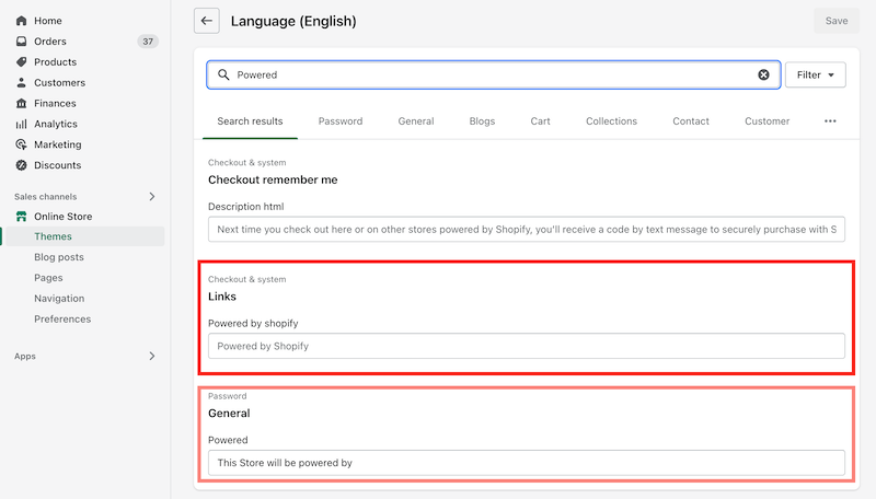Method 1: Replacing "Powered by Shopify" in Language Settings