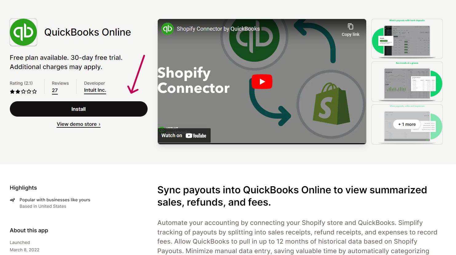 - Step 1 - Install the Quickbooks Online app in your Shopify dashboard
