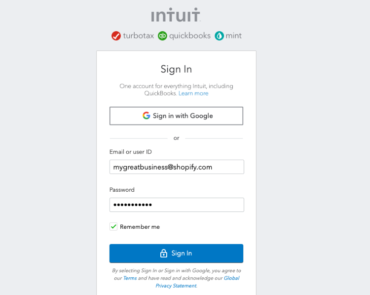 Log in to your Quickbooks Online account with the same credentials you normally use. If you always sign in with Google, choose that option.