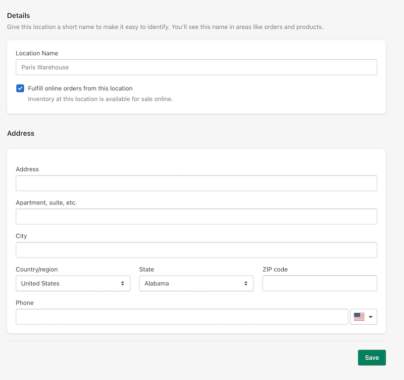 Shopify automatically creates one location when you set up your store. This location is usually the billing address you entered when creating your Shopify store, which may be different from your pickup location. Let's walk through the steps of creating a new pickup location in Shopify.