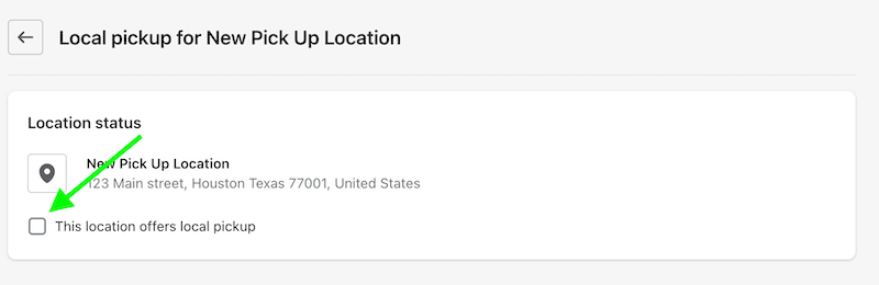 - On the next screen, check the box next to This location offers local pickup.